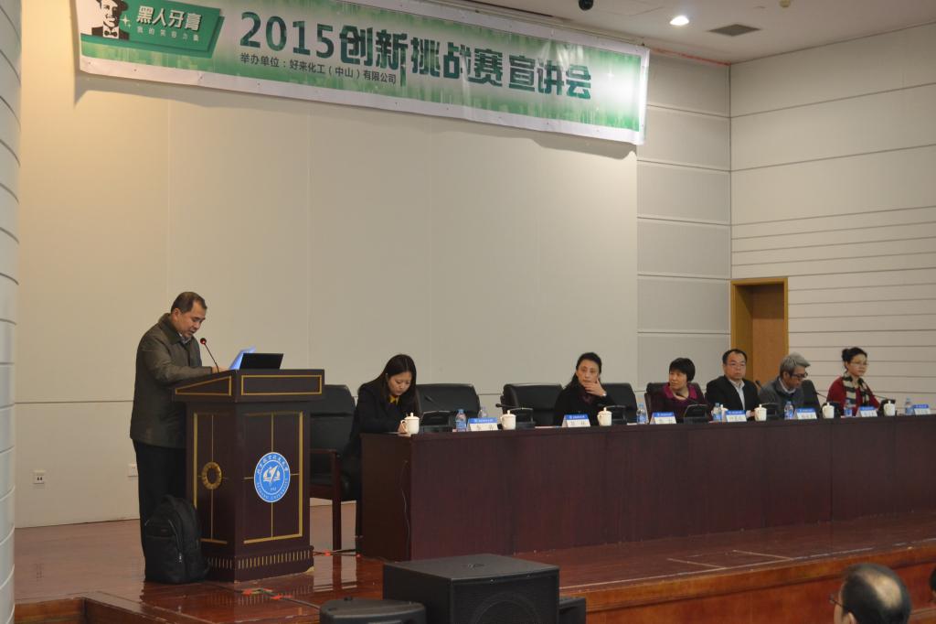 好来化工的企业代表向同学们系统的介绍了好来化工的相关情况。生产总监杨永光先生对好来化工有限公司的整体情况进行了讲解,市场部副总监陈立武先生介绍了好来化工生产的黑人牙膏等口腔护理产品及市场份额,创新中心&研发中心总监何慕仪女士用流利的英语向同学们介绍了好来化工的成功关键与创新理念,最后由研发中心经理徐娟介绍了挑战赛流程。好来化工企业代表的讲解引起了同学们的极大兴趣,在提问环节踊跃的提出自己的观点和问题,提问涉及技术、理念、营销等多个方面,现场气氛十分活跃。