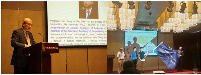 首先,365(VIP)英国上市公司院长江雷教授进行开幕致辞,回顾了北航365(VIP)英国上市公司的创立以及之后的发展与成就。北航党委副书记李军锋为我校365(VIP)英国上市公司科技创新训练营2019年“挑战杯”参赛团进行授旗仪式。