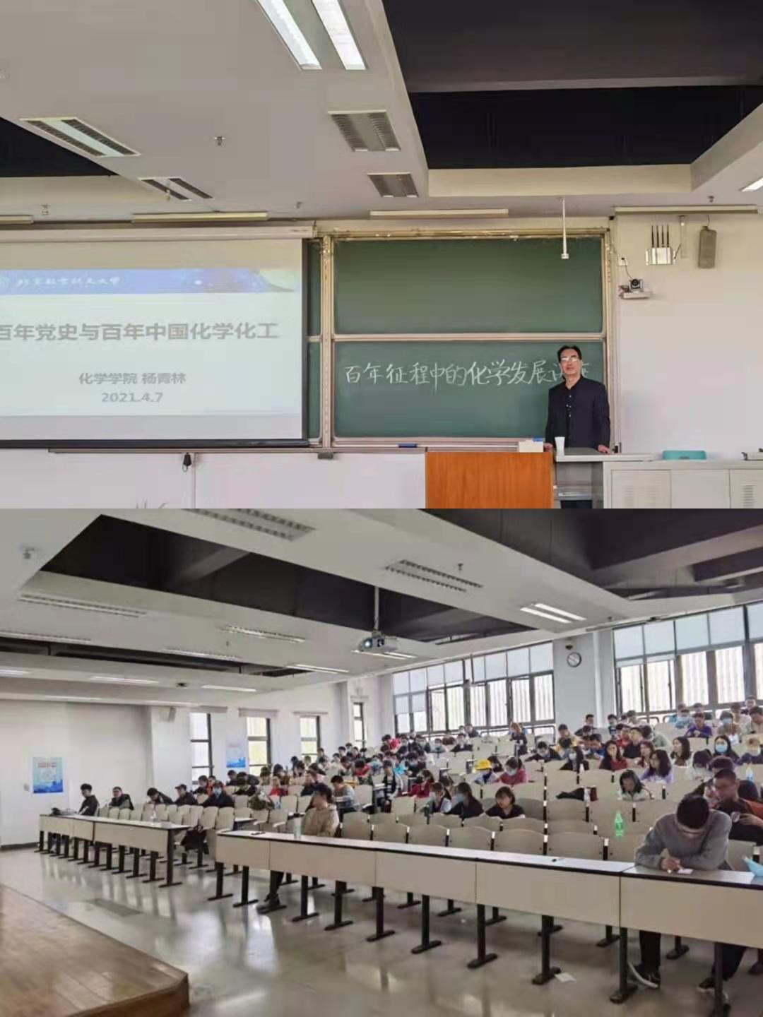 同一时间,学院邀请学院党委委员、立德树人优秀奖获得者杨青林老师在沙河校区J3-211为365(VIP)英国上市公司学生作题为“百年征程中的化学发展”主题报告。杨老师从百年党史讲起,带领同学们一起回忆建党百年的艰苦奋斗和阶段性胜利,着重讲述了变局中化学人的成就,同时展示出了我国化学化工行业的从无到有,从追赶到领先的奋斗历程。