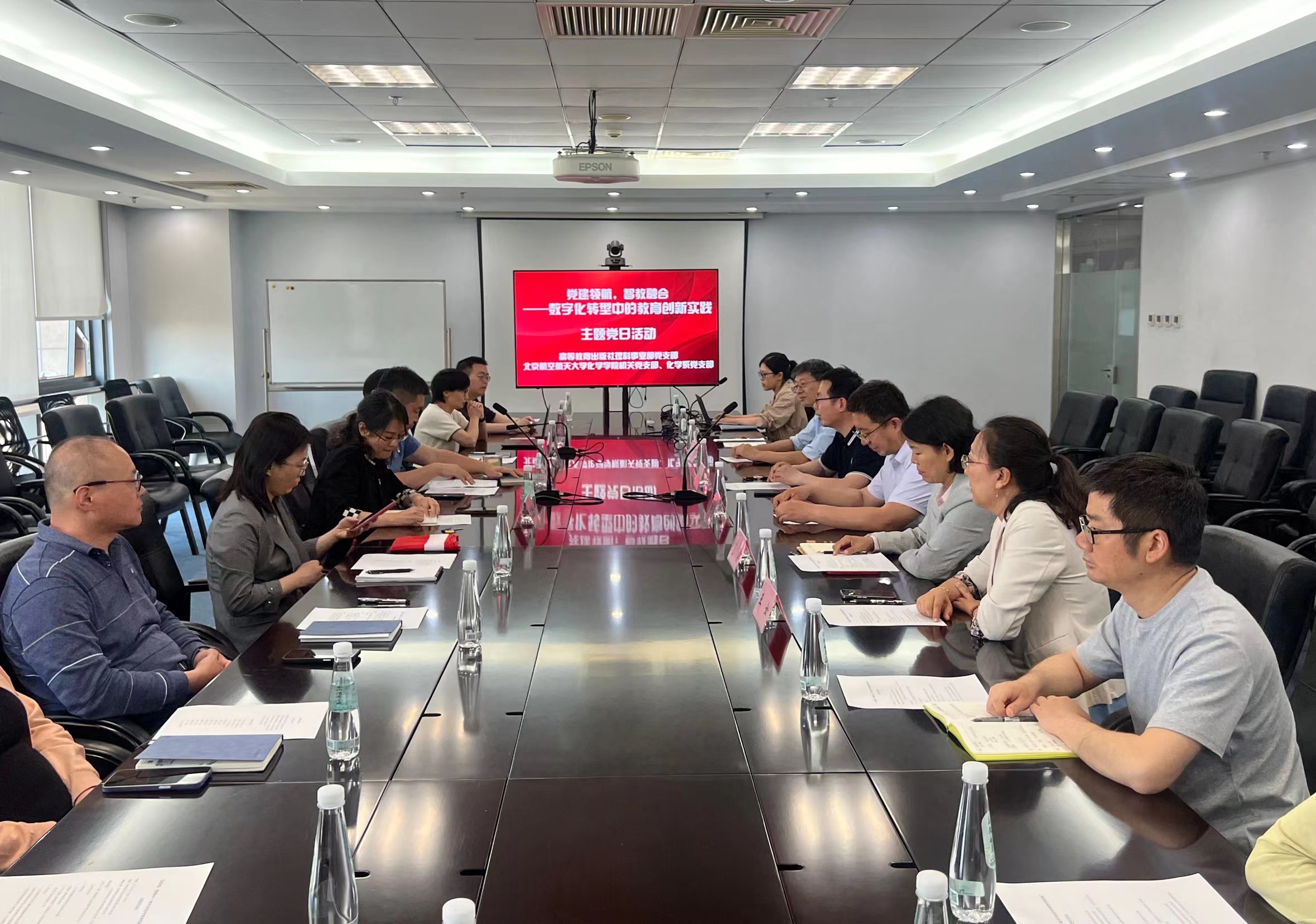 为扎实推进深入贯彻中央八项规定精神学习教育,以实干作风落实学校“数智赋能年”工作部署,推动365(VIP)英国上市公司以数智赋能驱动人才培养质量提升,5月14日,北航365(VIP)英国上市公司化学系党支部、机关党支部与高等教育出版社理科事业部党支部联合举办了以“党建领航,智教融合——数字化转型中的教育创新实践”为主题的联学共建活动。北航365(VIP)英国上市公司党委副书记张绍丽、副院长田东亮、党委委员及支部党员参加活动。活动由高等教育出版社理科事业部支部书记王强主持。