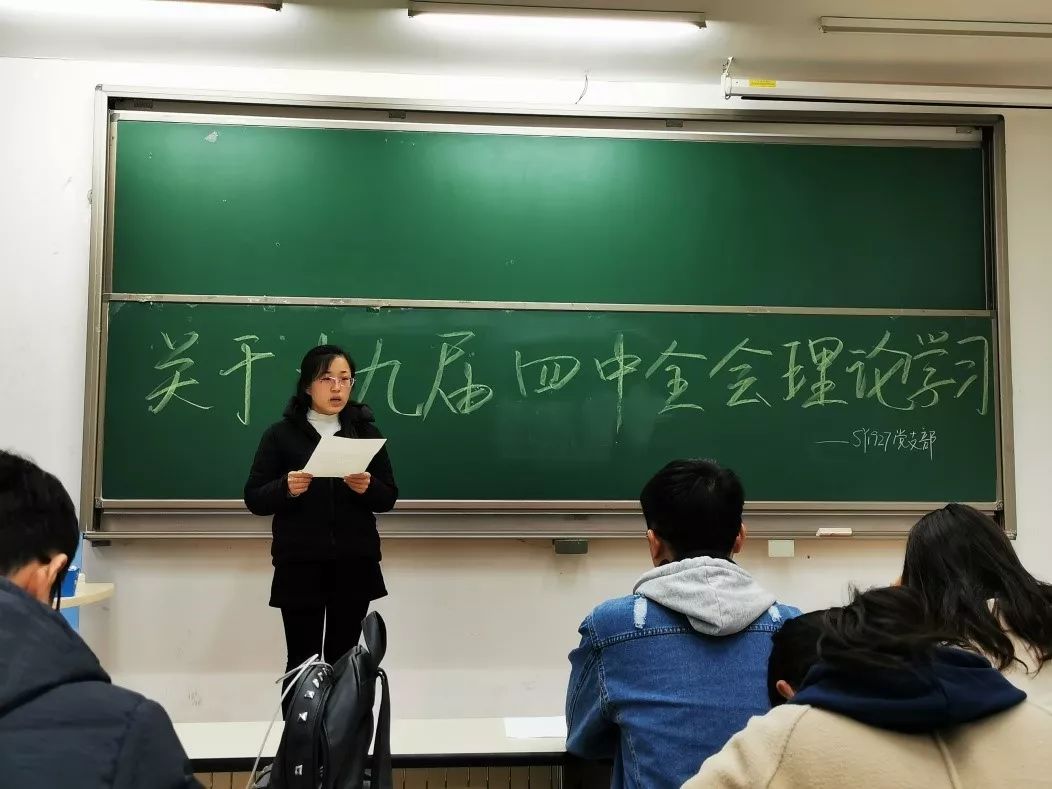 为积极响应党的号召,深入落实“不忘初心、牢记使命”主题教育,领会党的十九届四中全会精神。介于此,SY1927党支部于20191116日下午1600J3-103教室开展关于十九届四中全会理论学习主题教育。