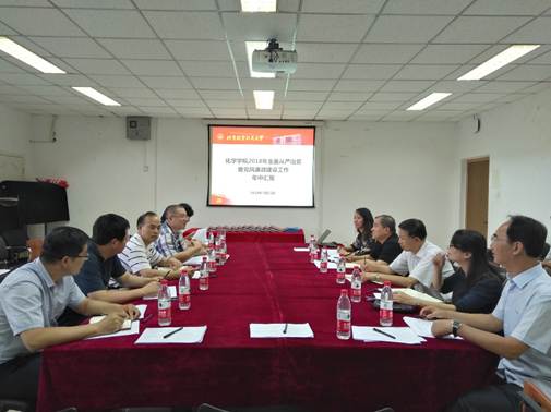 7月11日下午,由纪委书记何新洲,纪委副书记、纪委办公室主任、监察处处长武立勋,纪检员方滨艳,纪检员何述义,党风廉政监督员王健和谭立组成的检查组对我院全面从严治党暨党风廉政建设工作进行了检查。我院党委书记李红捷,常务副院长郭林,本科教学副院长朱英,化学系主任高秋明,党委委员杨青林及学院教工党支部书记、青年教师代表等参加了汇报会。